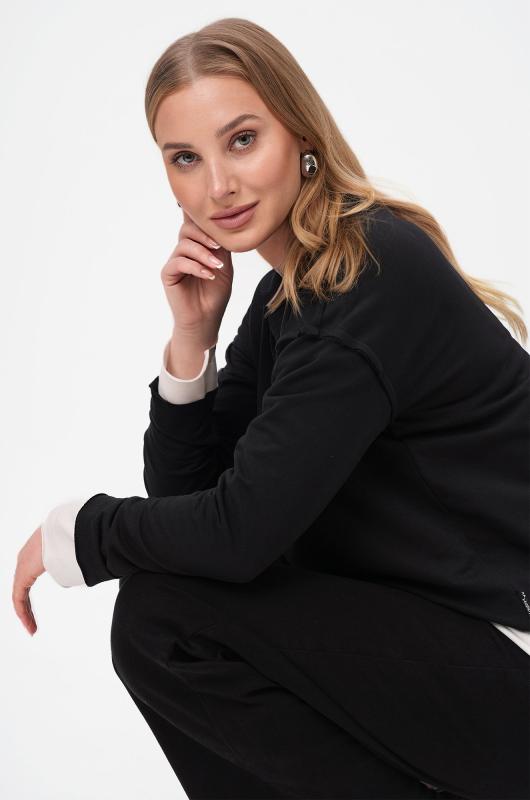 Комфорт с характером — черный женский лонгслив в стиле оверсайз создаёт расслабленное настроение и стильно завершает повседневный образ. Свободный хлопковый лонг идеален для лета, прохладных осенних вечеров и в демисезон.