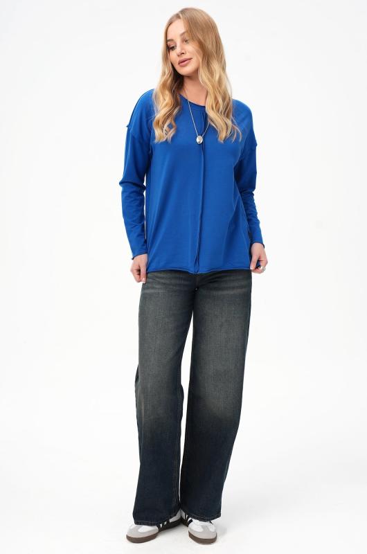 Комфорт с характером — синий женский лонгслив в стиле оверсайз создаёт расслабленное настроение и стильно завершает повседневный образ. Свободный хлопковый лонг идеален для лета, прохладных осенних вечеров и в демисезон.