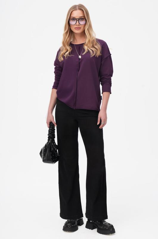 Комфорт с характером — фиолетовый женский лонгслив в стиле оверсайз создаёт расслабленное настроение и стильно завершает повседневный образ. Свободный хлопковый лонг идеален для лета, прохладных осенних вечеров и в демисезон.