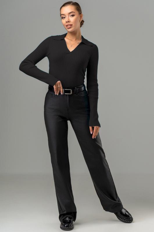Вязаный джемпер поло в рубчик – современная и стильная база для осени и весны. Облегающий джемпер с длинным рукавом легко вписывается в повседневные и офисные образы.