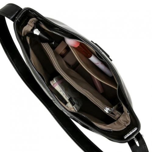 Небольшая, но вместительная сумочка на все случаи жизни. Сумка изготовлена из натуральной кожи. Внутри: одно отделение. По бокам расположены карманы на молнии и без для документов, телефона и различных мелочей. Внутреннее отделение закрывается на молнию. На внешней лицевой стенке (под крышкой-клапаном) расположен карман на молнии. На внешней задней стенке расположен карман на молнии. Сумка закрывается на крышку-клапан с поворотным замком. В комплекте удлинённый ремень, регулируемый по высоте. Цвет фурнитуры: никель Цвет сумки: чёрный Подписывайтесь на нас в соц сетях и смотрите видеобзоры наших товаров первыми!