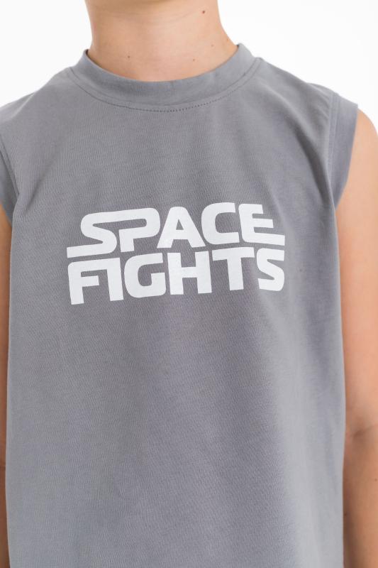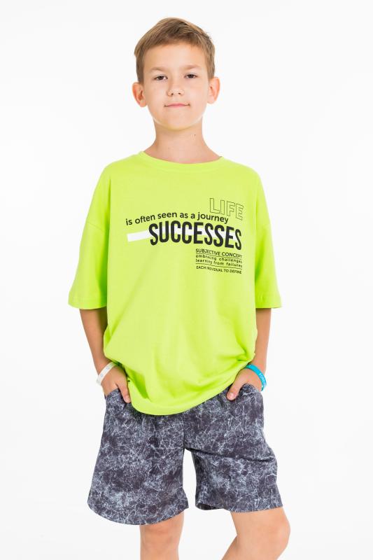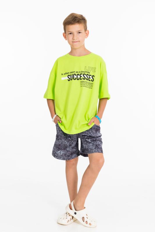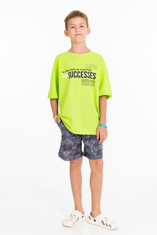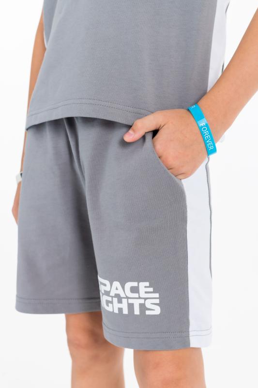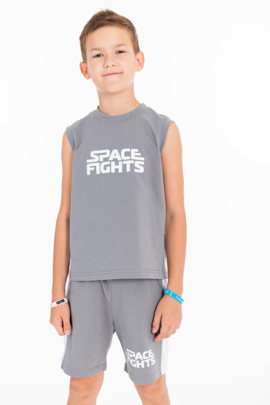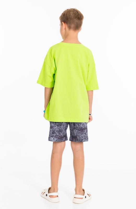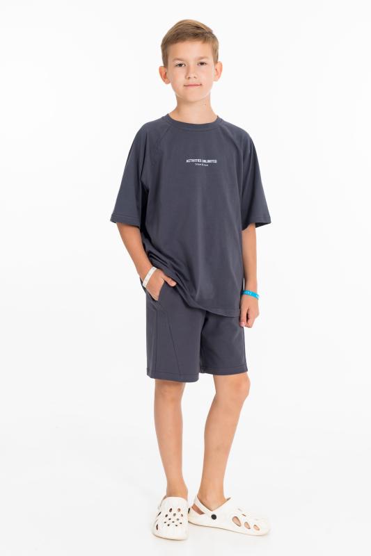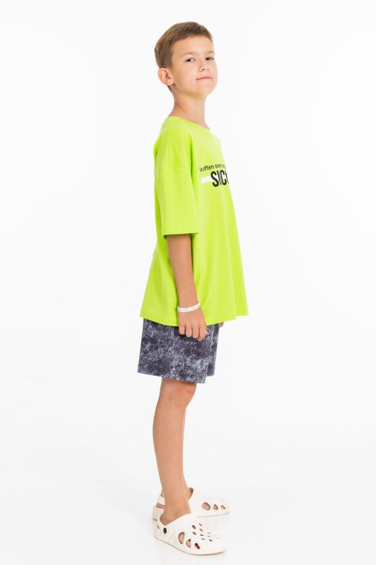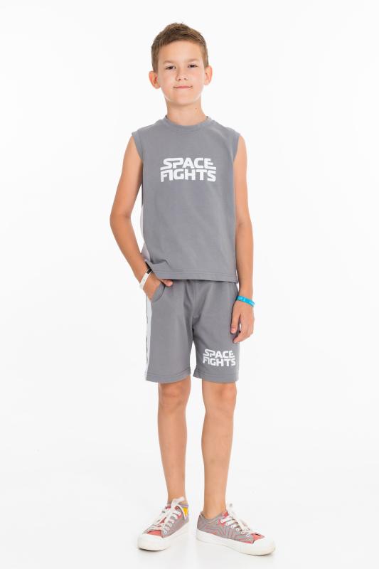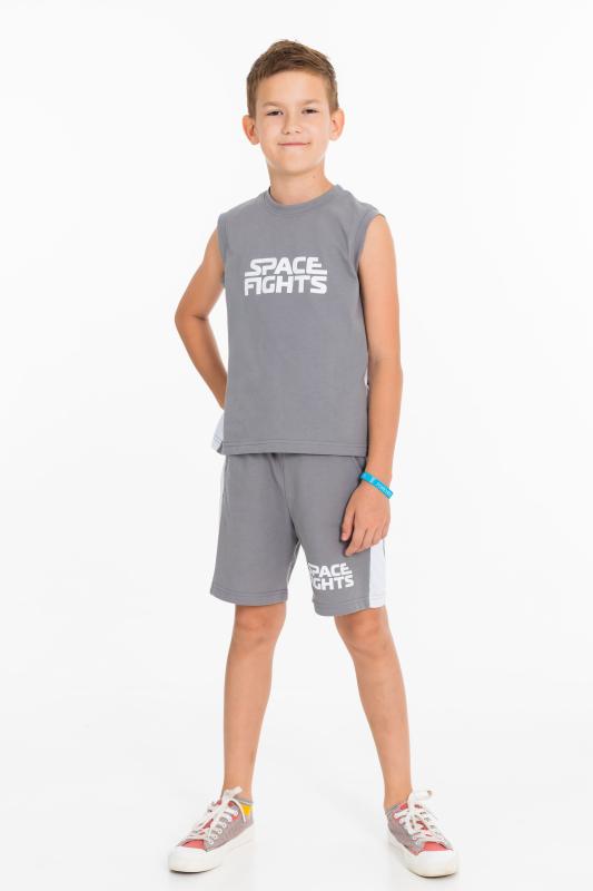 Костюм для мальчика изготовлен из кулирки реактив, что делает его комфортным и приятным на ощупь. Состоит из футболки и шорт, идеального варианта для активных игр и занятий на свежем воздухе. Футболка с коротким рукавом и круглым вырезом горловины обеспечивает комфорт и свободу движений. Шорты средней длины, свободного кроя и поясом на резинке также обеспечивают комфорт и удобство во время носки. Спереди нанесен принт, который придает изделию стильный и яркий вид. Такой костюм идеально подойдет для повседневного использования, прогулок, спортивных мероприятий или активных игр.