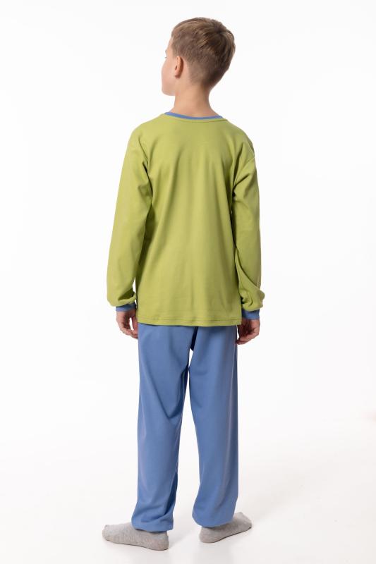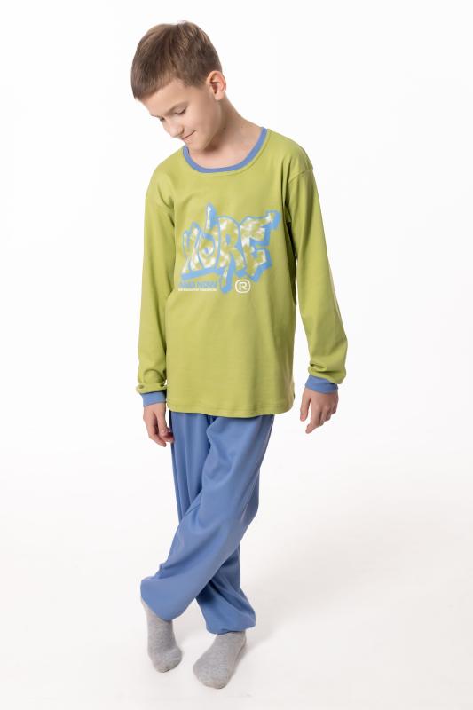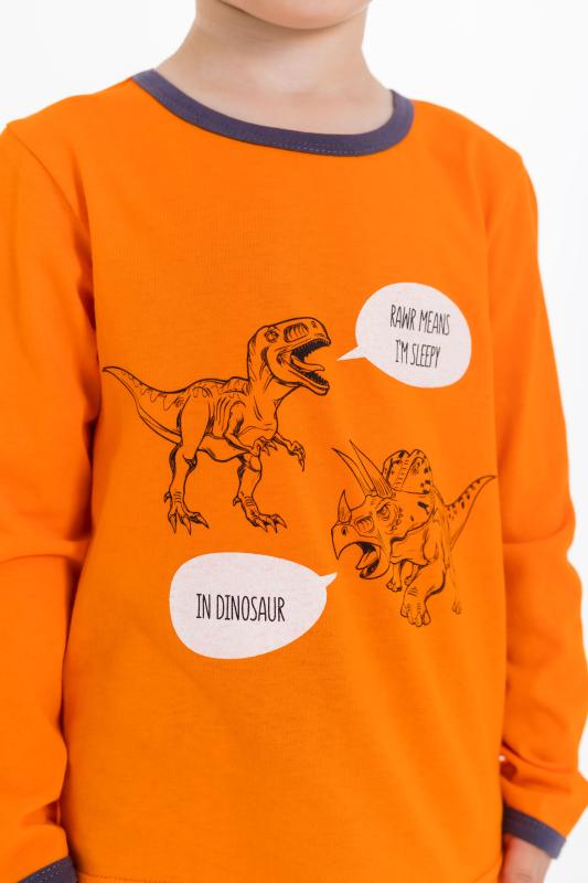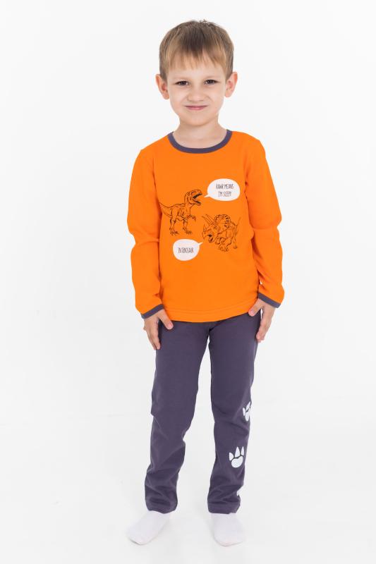 Пижама для мальчика из 100%-ного хлопка — это отличный выбор для комфортного сна и отдыха. Футболка с длинными рукавами и круглым вырезом горловины обеспечивает свободу движений, а пояс на резинке на брюках гарантирует удобную посадку. Низ рукавов и горловина футболки обработаны бейкой в цвет брюк, что придаёт изделию аккуратный вид. На футболке и брюках имеется принт, который понравится вашему ребенку. Эта пижама идеально подойдёт для повседневной носки дома или во время отдыха. Она изготовлена из натуральной ткани, которая позволяет коже дышать и обеспечивает комфортный сон.