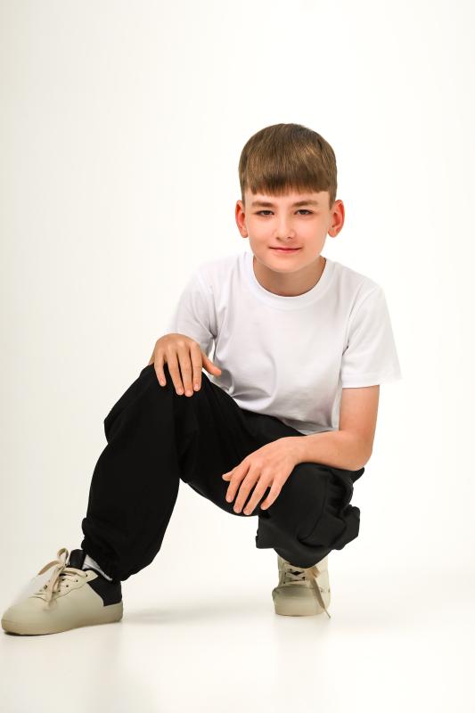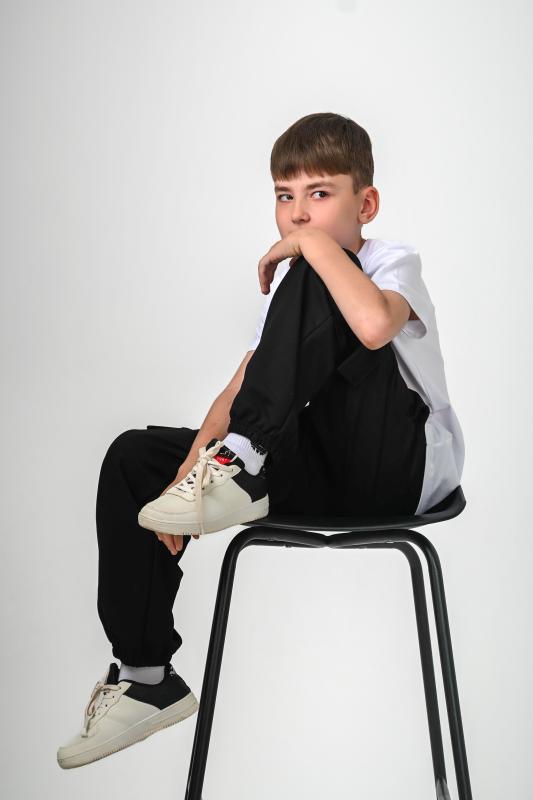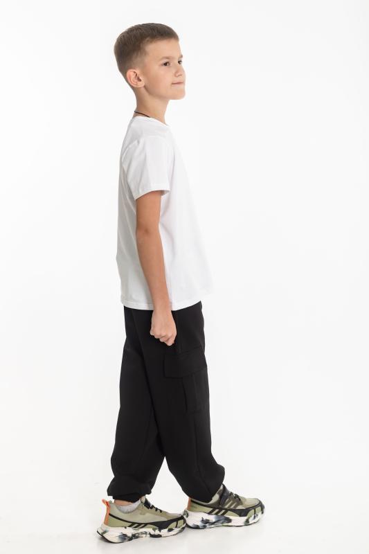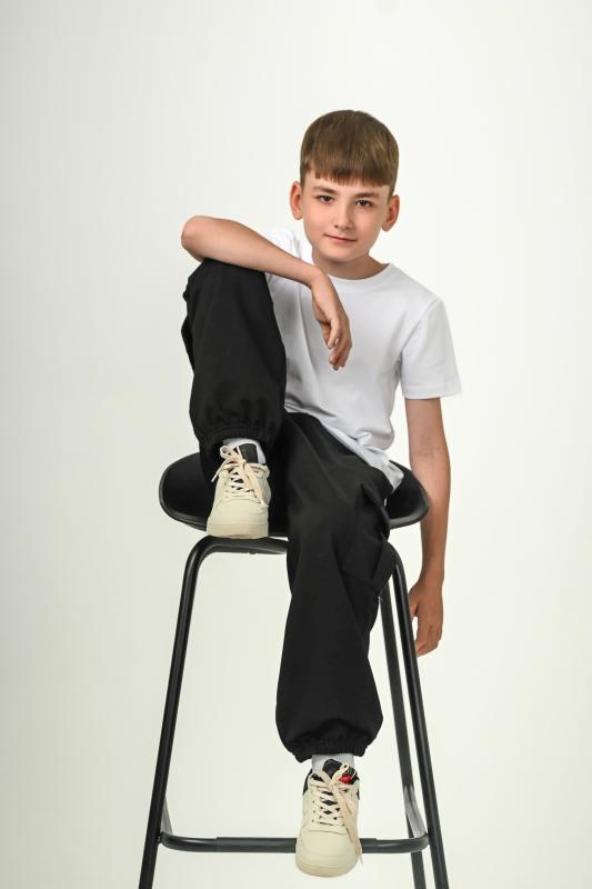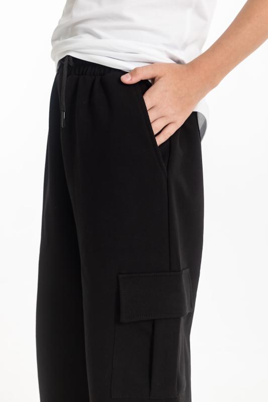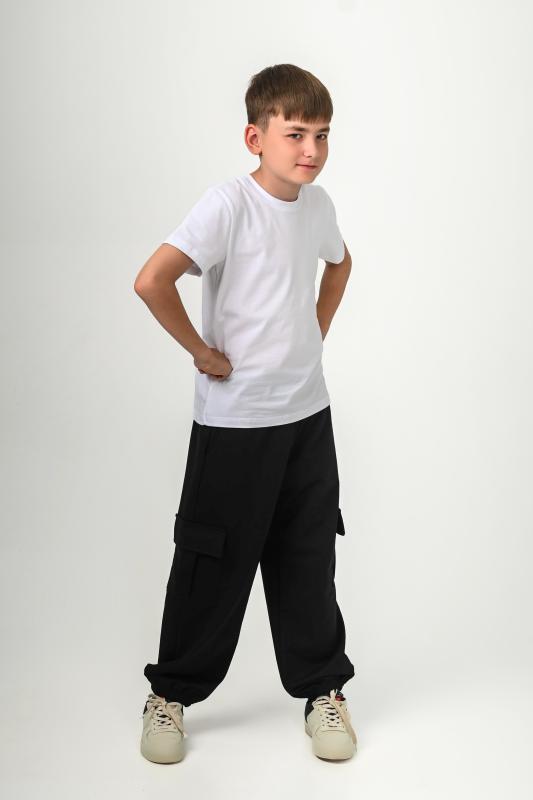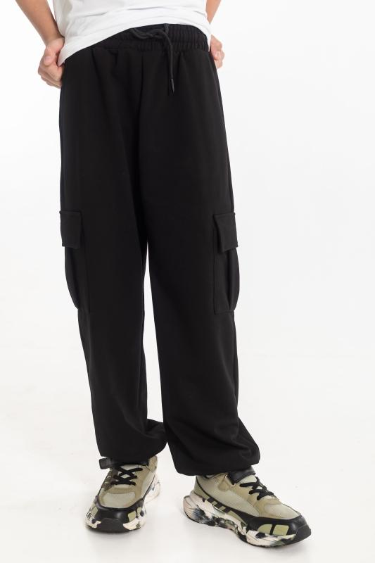Стильные и удобные брюки-карго выполнены из однотонного футера с лайкрой. Модель оснащена притачным поясом со шнуром для регулировки, боковыми карманами и накладными карманами на боковых швах в области колена. Карманы с клапанами делают дизайн ещё более функциональным и современным. Брюки идеально подойдут для прогулок и активного отдыха, обеспечивая комфорт и свободу движений.