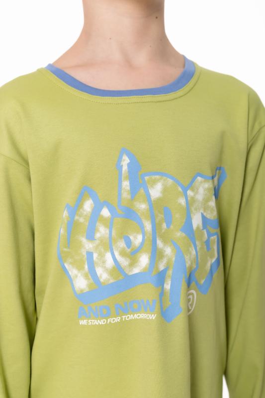 Футболка с длинным рукавом выполнена из кулирки с лайкрой - мягкого и приятного к телу материала. Модель с длинным рукавом и круглым вырезом горловины. Спереди расположен аккуратный принт, придающий изделию стильный и современный акцент. Отличный вариант для повседневной носки.