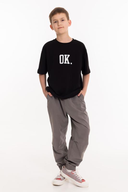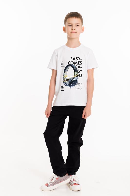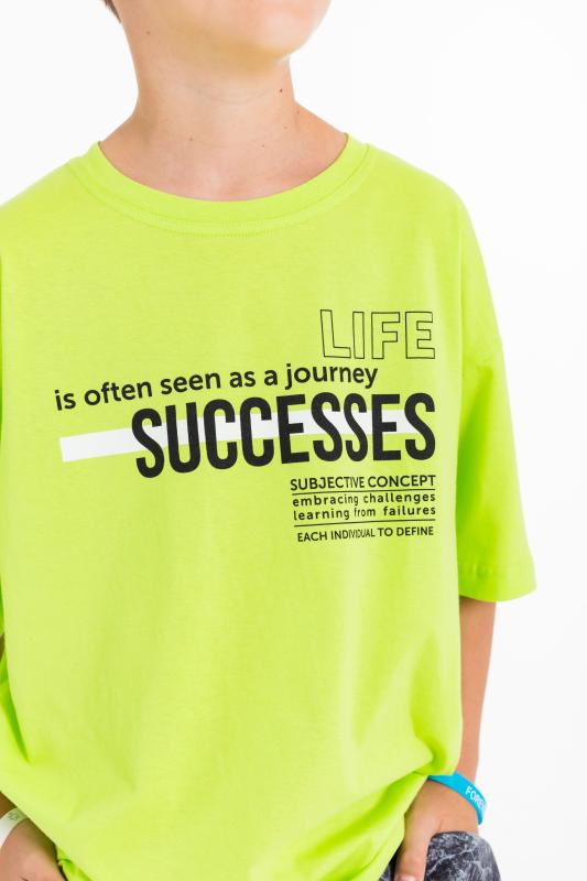 Детская футболка выполнена из мягкого хлопкового полотна, приятного к телу и комфортного в носке. Модель свободного кроя с круглым вырезом горловины и рукавами длиной до локтя обеспечивает удобство и свободу движений. Спущенная линия плеча придаёт изделию современный и непринуждённый вид, делая футболку отличным вариантом для повседневного гардероба ребёнка.