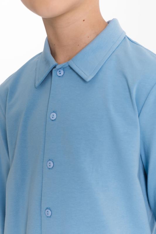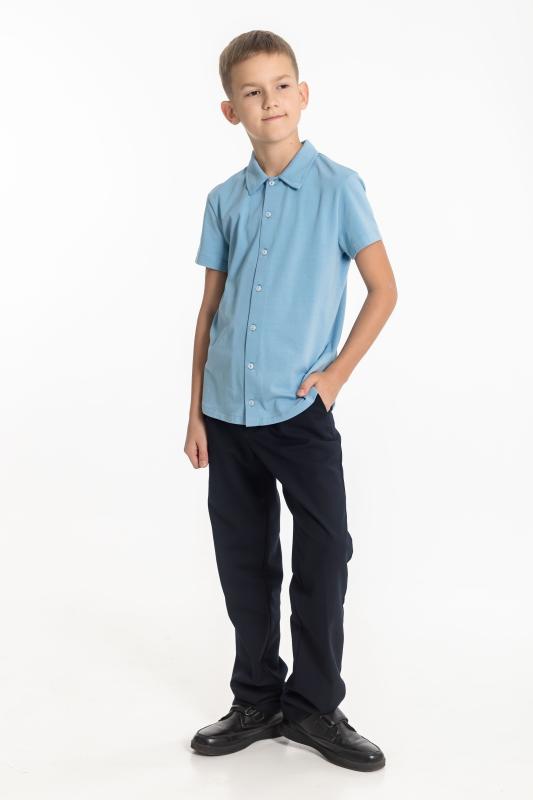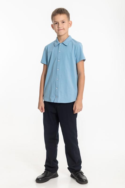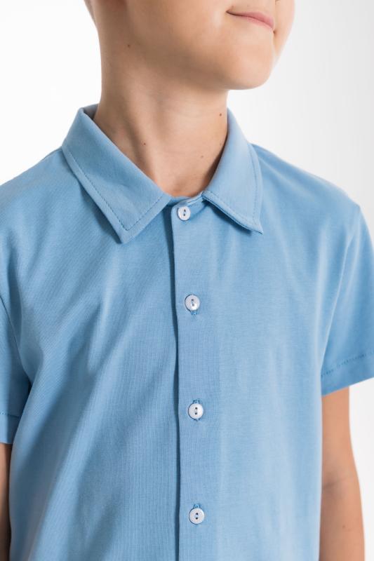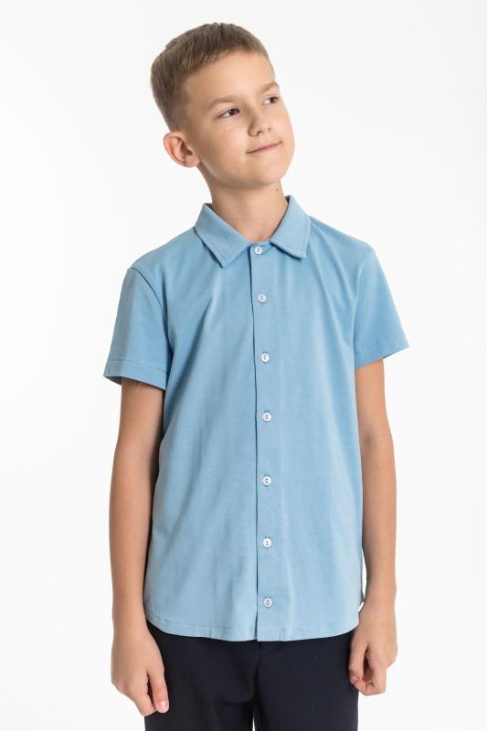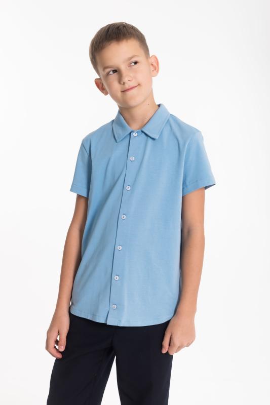 Серо-голубая рубашка с коротким рукавом из материала кулирка с лайкрой и застёжкой на пуговицы — отличный выбор для школьника. Обеспечивает свободу движений, комфорт и аккуратный внешний вид. Воротник придаёт изделию стильный вид.