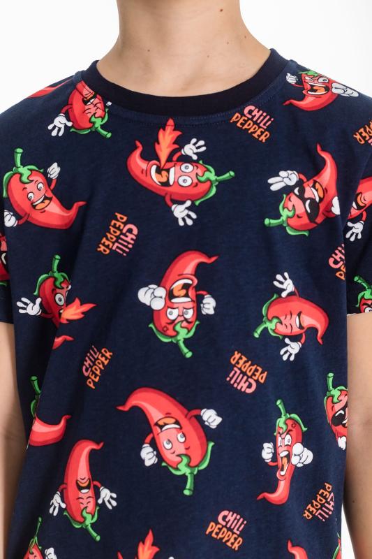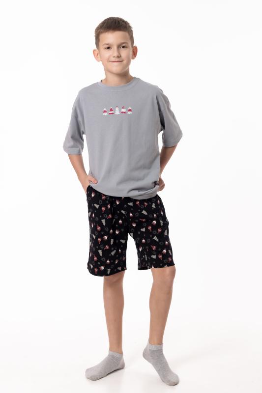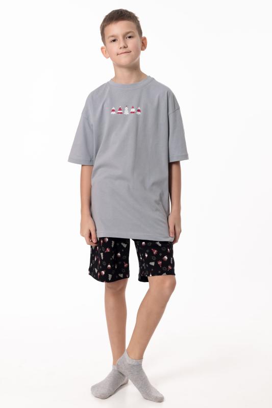 Детская пижама, состоящая из футболки и шорт — практичный комплект для сна и отдыха дома. Футболка оверсайз из хлопкового полотна с коротким рукавом и круглым вырезом горловины обеспечивает комфортную посадку. Спереди расположен стильный принт, который добавляет образу выразительности. Шорты из мягкого интерлока с поясом на резинке и карманами в боковых швах — всё для удобства в повседневной носке.