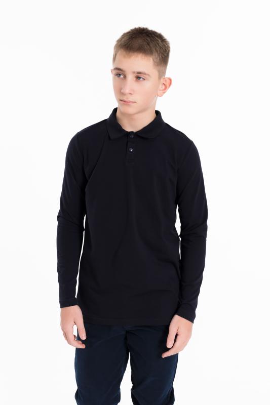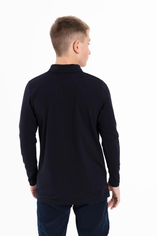 Синяя футболка-поло с длинным рукавом из материала кулирка с лайкрой и застёжкой на две пуговицы — отличный выбор для школьника. Обеспечивает свободу движений, комфорт и аккуратный внешний вид. Воротник придаёт изделию стильный вид.