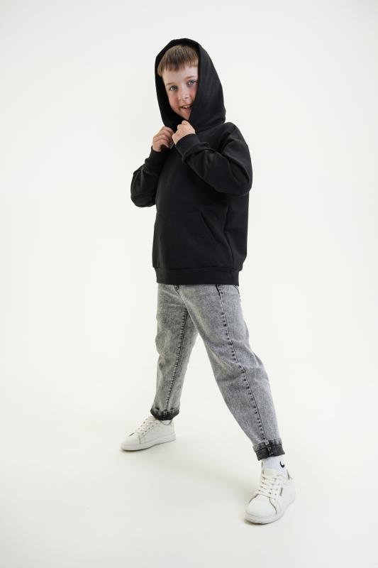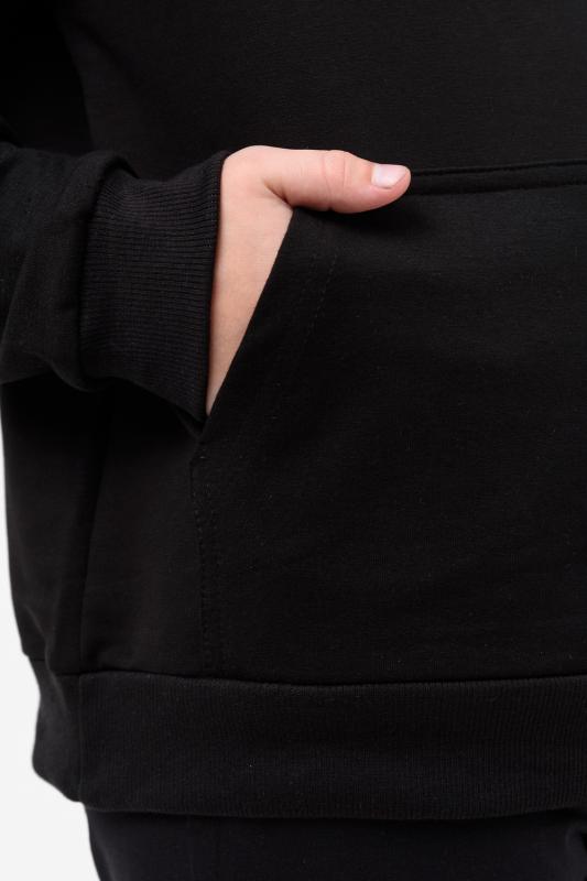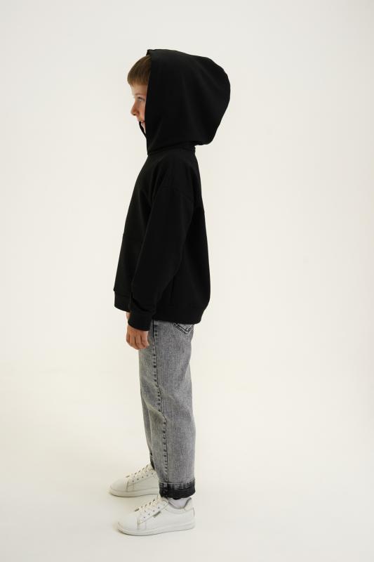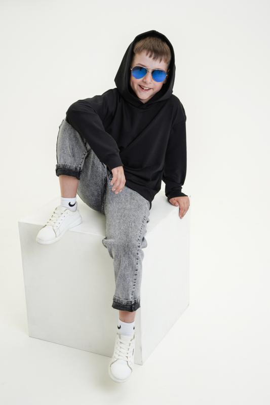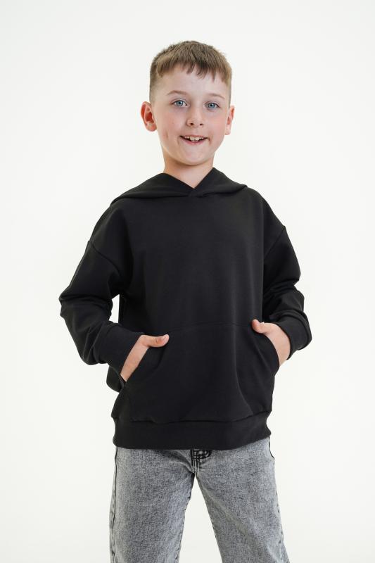 Толстовка для мальчиков и девочек младшего и старшего школьного возраста, из трикотажного полотна футер с лайкрой, кулирная гладь и кашкорсе. Толстовка свободного кроя, прямого силуэта, стиль оверсайз, с капюшоном. Спереди настрочен карман - кенгуру. Рукав спущенный на манжете. По низу толстовки пояс. Капюшон на подкладке из трикотажного полотна - кулирная гладь. Манжеты рукавов и пояс выполнены из трикотажного полотна кашкорсе. По краю капюшона проложена отделочная строчка.