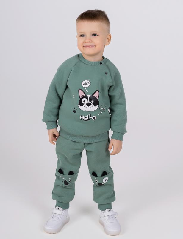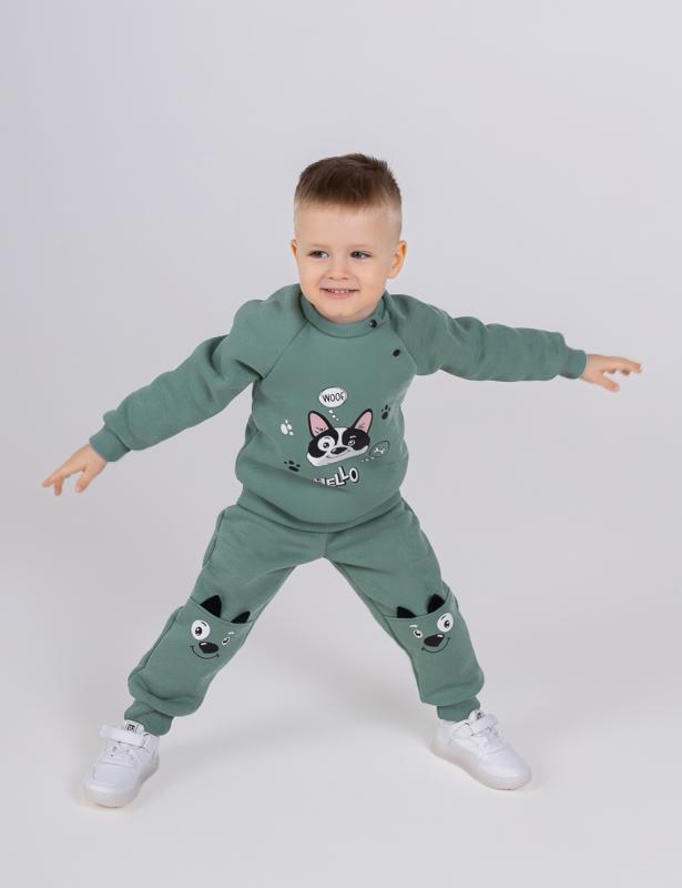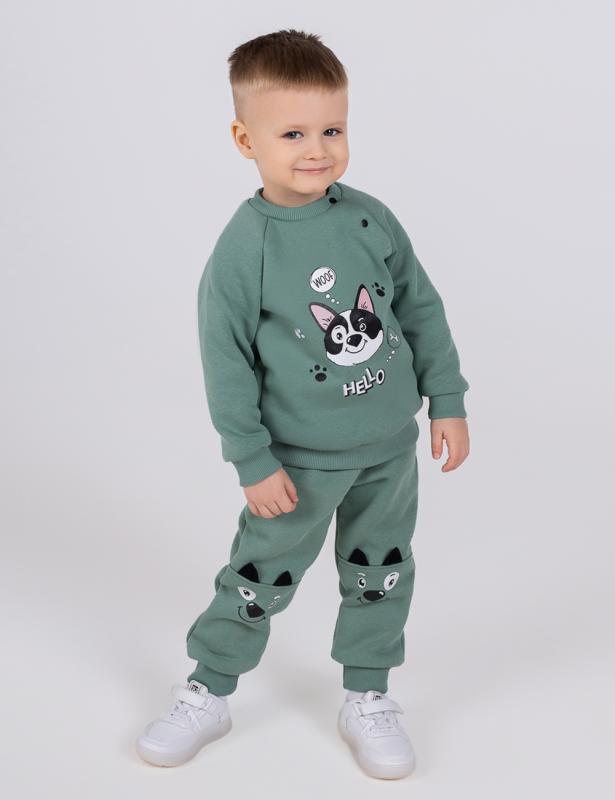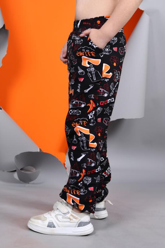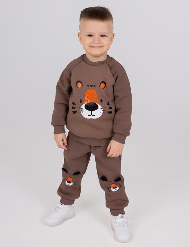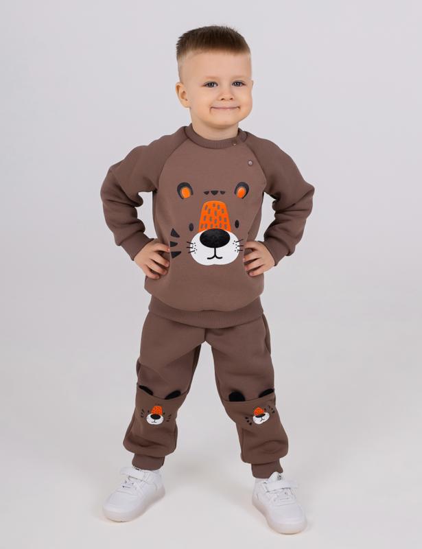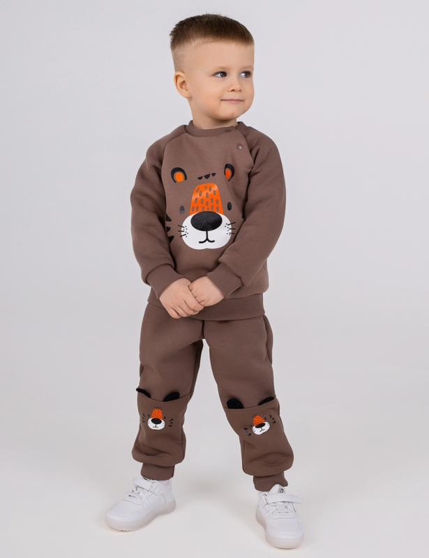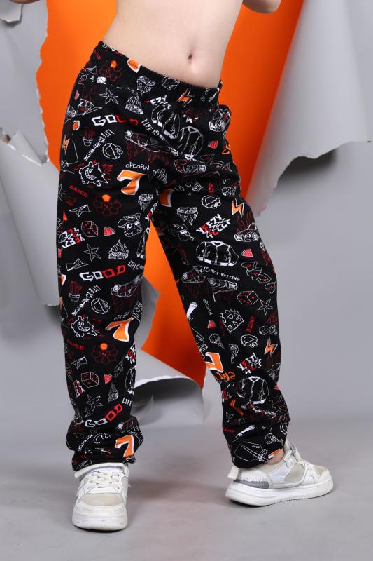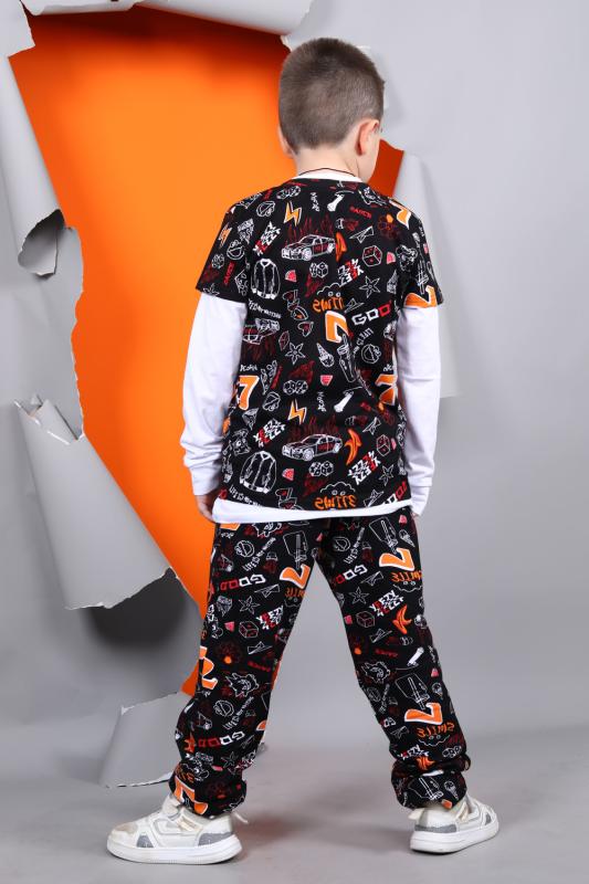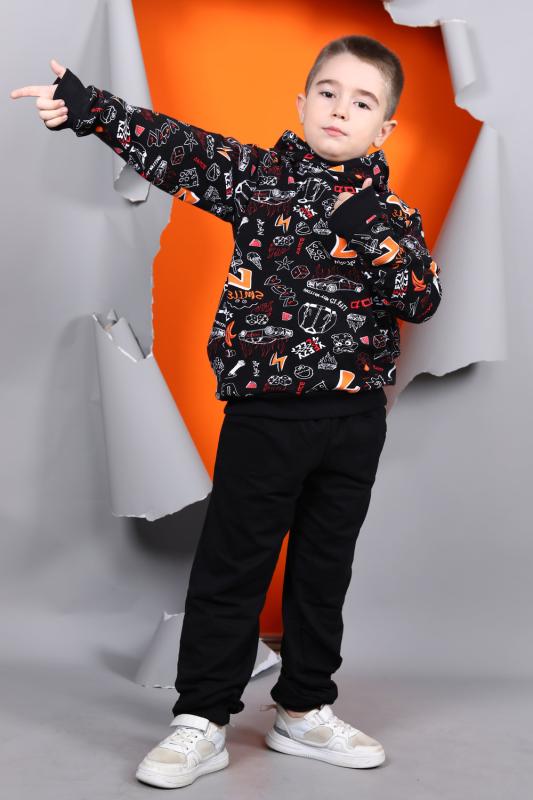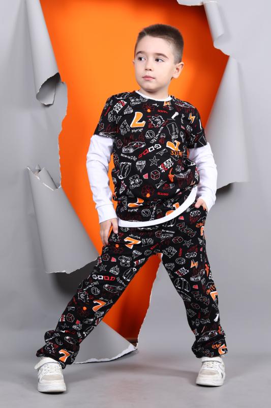 для мальчика из мягкого футера с начёсом. Пояс на резинке, низ штанины на эластичных манжетах. Принт, нанесённый методом шелкографии. Для сохранения первоначальных свойств изделия, очень важно соблюдать рекомендации по уходу за изделием, указанные на этикетке.