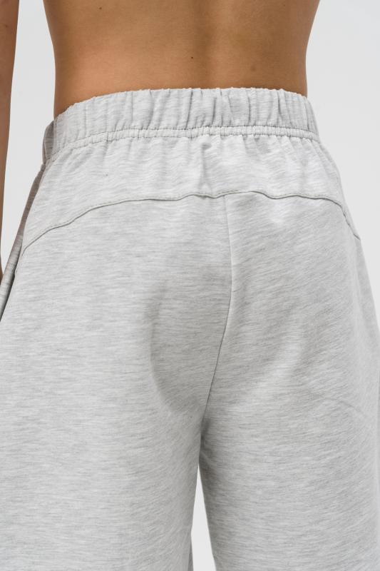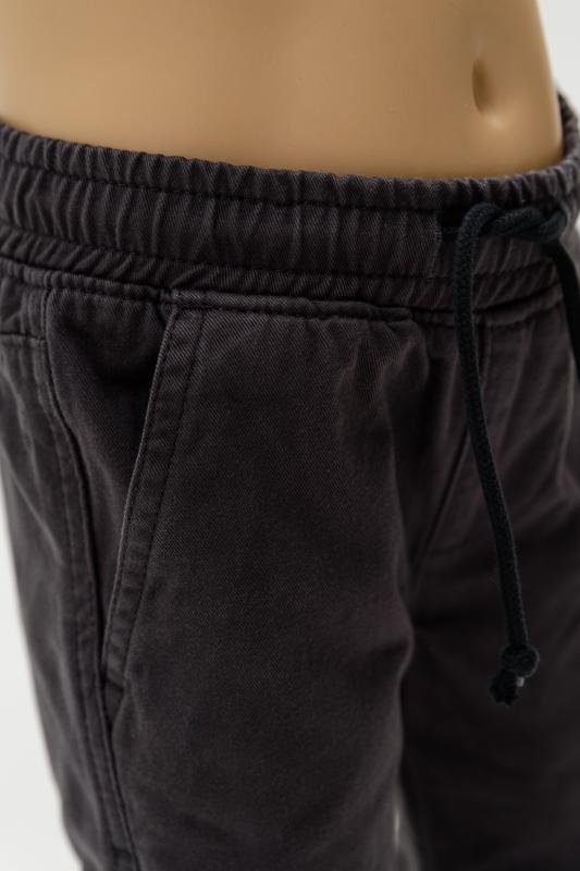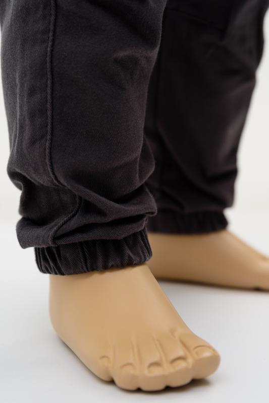 Модные серые брюки для мальчика выполнены из натурального 100% хлопка. По низу брючин расположены манжеты. В поясе вставлена эластичная резинка с контрастным функциональным шнурком. Модель дополнена карманами по бокам.