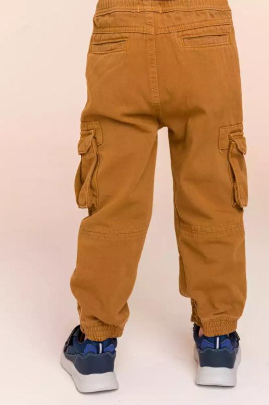 Модные брюки для вашего мальчика выполнены из натурального 100% хлопка. Модель дополнена карманами.По низу брючин расположены манжеты.В поясе вставлена эластичная резинка и контрастный регулировочный шнурок.