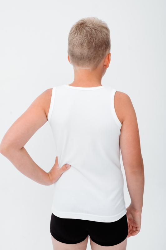 Майка на мальчика изготовлена из мягкого хлопкового трикотажа качества пенье. Майка однотонная полу прилегающего силуэта, длиной до середины линии бедер, с углубленным вырезом горловины и пройм, полочка и спинка майки прямые цельнокроеные. Удобный для ребенка крой не стесняет движения. В составе ткани есть эластомерные нити, это позволяет не вытягиваться в процессе носки и сохранять форму после стирки. Майка изготовлена с соблюдением всех норм, товар сертифицирован, экологичен и безопасен для детей. Пусть Ваши дети изучают мир в удобном для них белье.