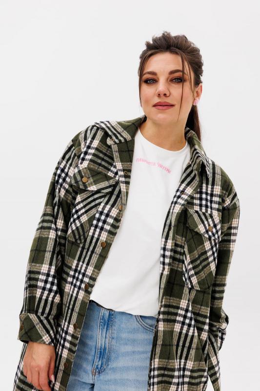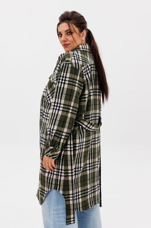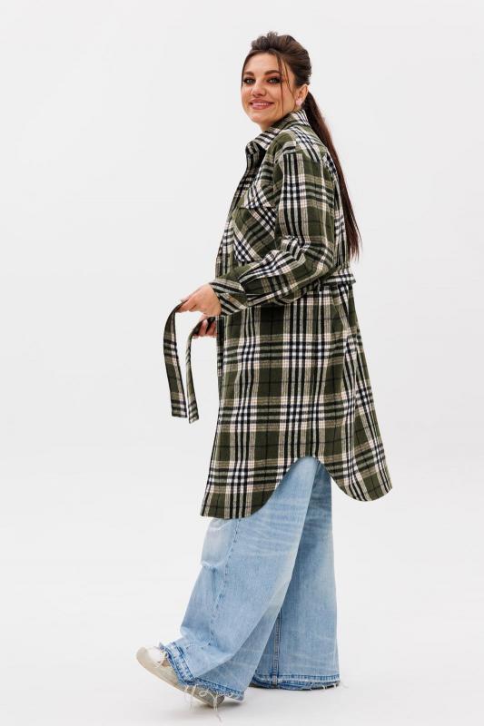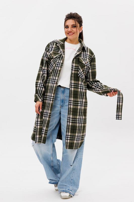 Уютное рубашка от Анелли из мягкой пальтовой ткани в клетку станет идеальным выбором для прохладных дней! Рубашка миди длины, умеренного объема, с прямым силуэтом и съемным поясом, подчеркивает фигуру и придает образу стильную непринужденность. На передних частях расположены накладные карманы с клапанами, а также удобные карманы в боковых швах. Спинка украшена отрезной кокеткой, а длинные рукава рубашечного типа завершены манжетами на пуговицах. Внутри рубашка выполнена на подкладке, обеспечивая комфорт и тепло. Клетчатый узор в актуальных цветах не только стильно смотрится, но и поднимает настроение в серую погоду, превращая этот предмет гардероба в модное и практичное решение на несколько сезонов! На модели в рубашке цвета «хаки» лонгслив 1432.Размер 48: ОГ-112