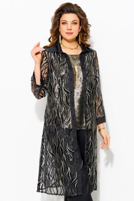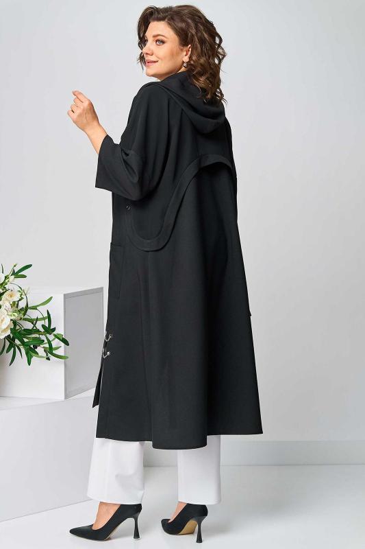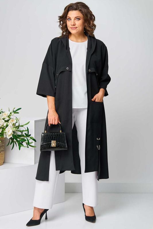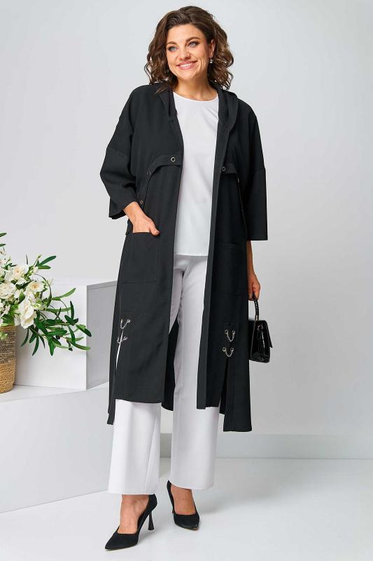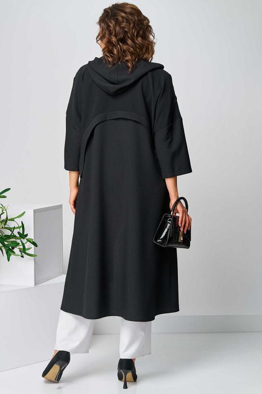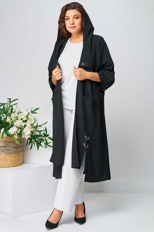 Кардиган свободного силуэта, из плательной ткани с дополнениями из шифона. Вверху капюшон. По переду фигурные кокетки, карманы накладные, по фигурному низу шлицы на кольцах. Рукав в изделии спущенный. По спинке фигурная кокетка. В отделке изделия используются блочки.Вырез горловины капюшон Длина изделия 121 (±1) см. Длина рукава 52 (±1) см. Статус модели повседневный Силуэт свободный Объём груди размер 50 –108 (±2) см. размер 52 –112 (±2) см. размер 54 –116 (±2) см. размер 56 –120 (±2) см. Объём талии размер 50 – 110 (±1) см. размер 52 – 114 (±1) см. размер 54 – 118 (±1) см. размер 56 – 122 (±1) см. Объём бёдер размер 50 – 114 (±1) см. размер 52 – 118 (±1) см. размер 54 – 122 (±1) см. размер 56 – 132 (±1) см.