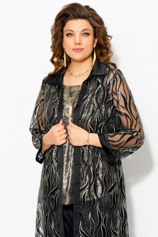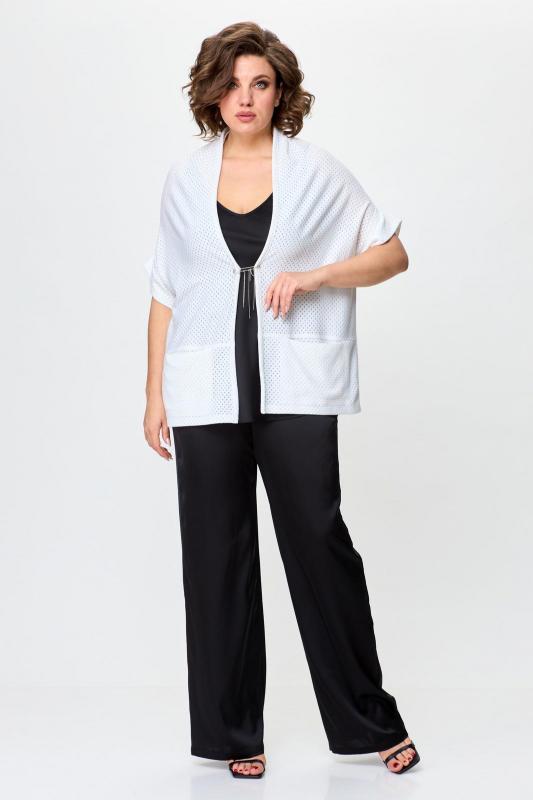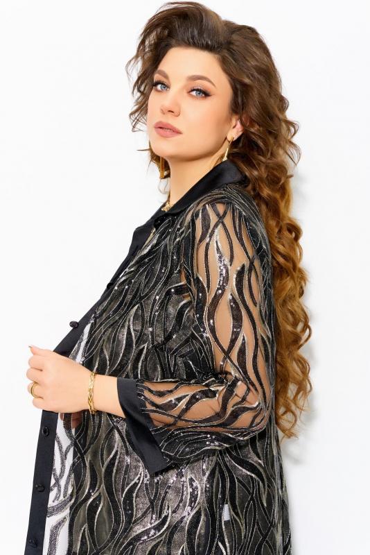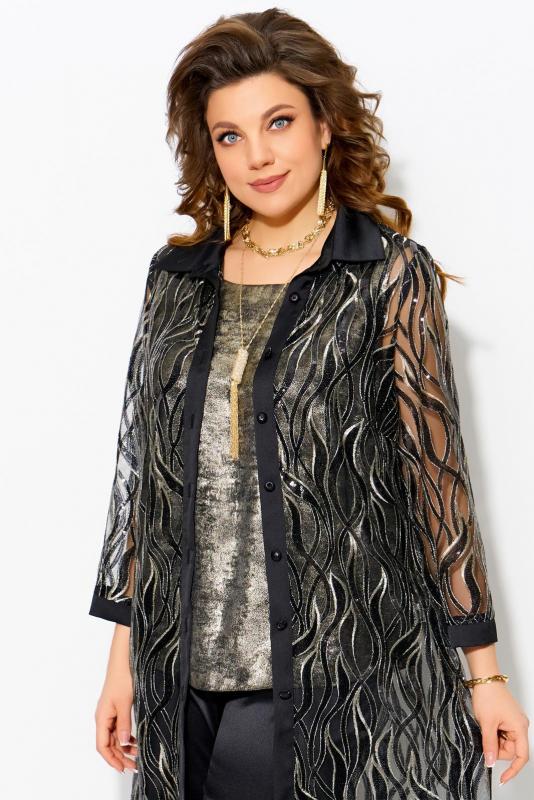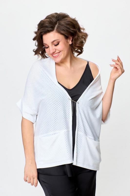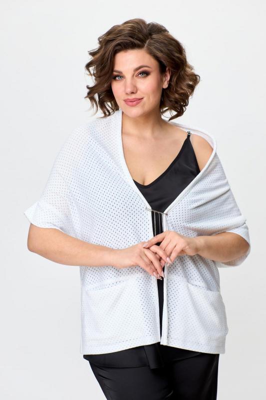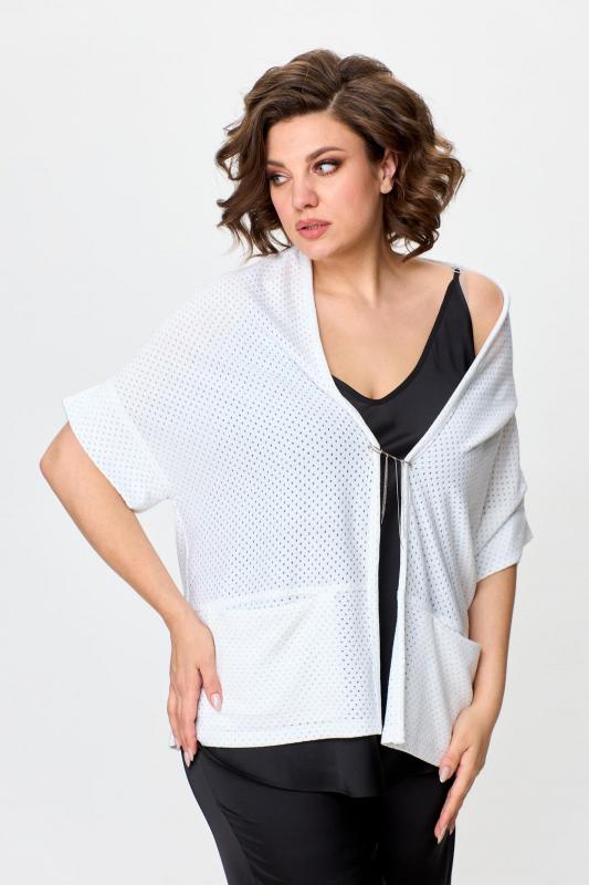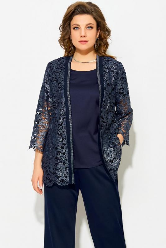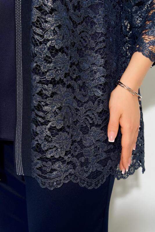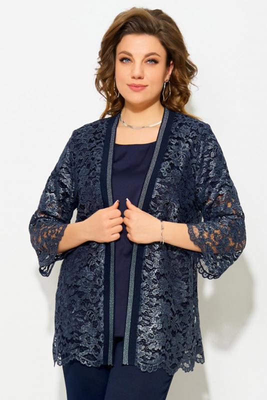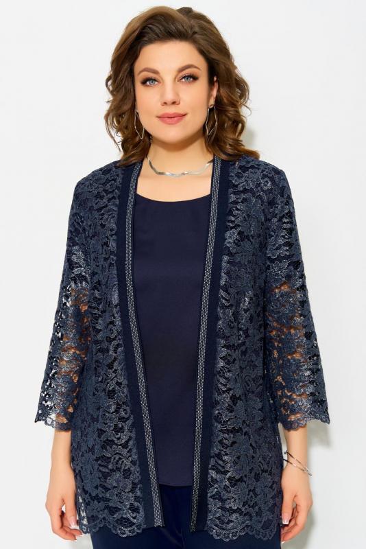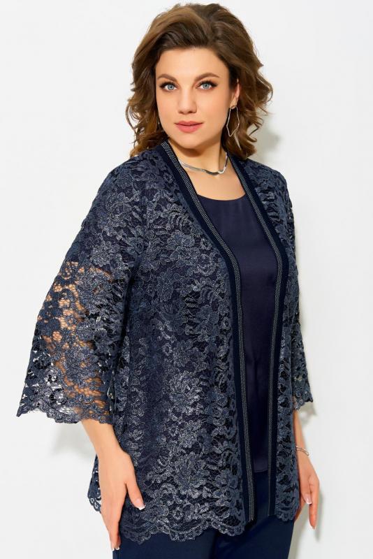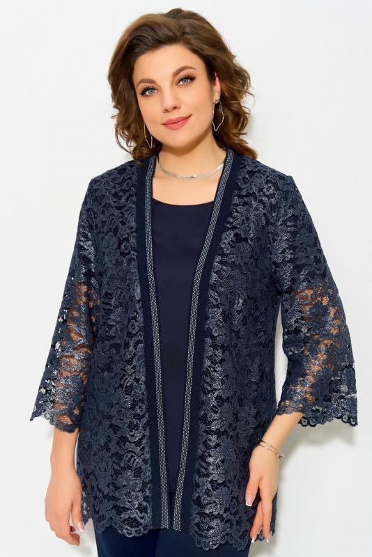 Кардиган Вивея выполнен из кружевной ткани прямого силуэта, без застёжки, край борта обработан довязом. Богатая и модная ткань, с легким переливом, придает изящности и модности. По груди кардигана выточка. По низу изделия и рукава - фистоны. Качественная ткань и отличный пошив белорусского качества сделают вас королевой праздника.