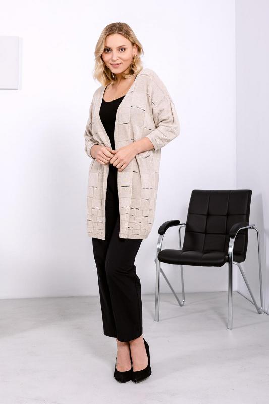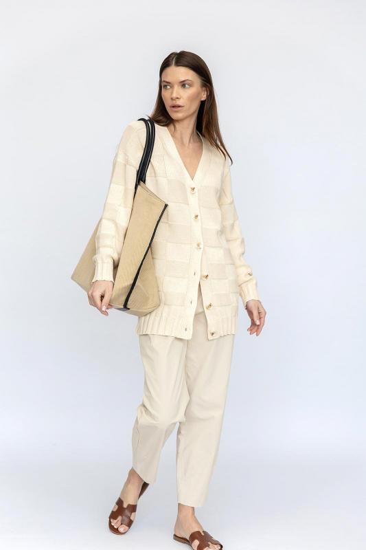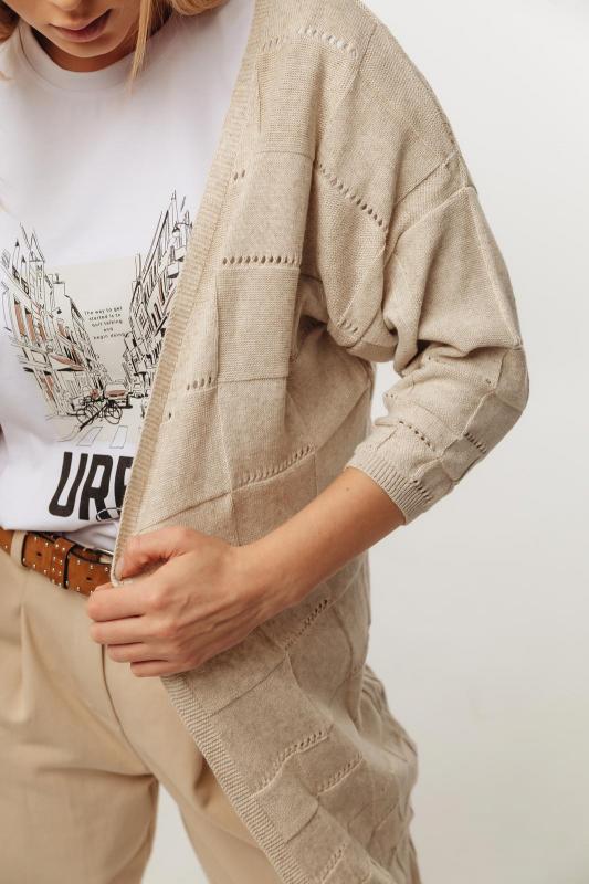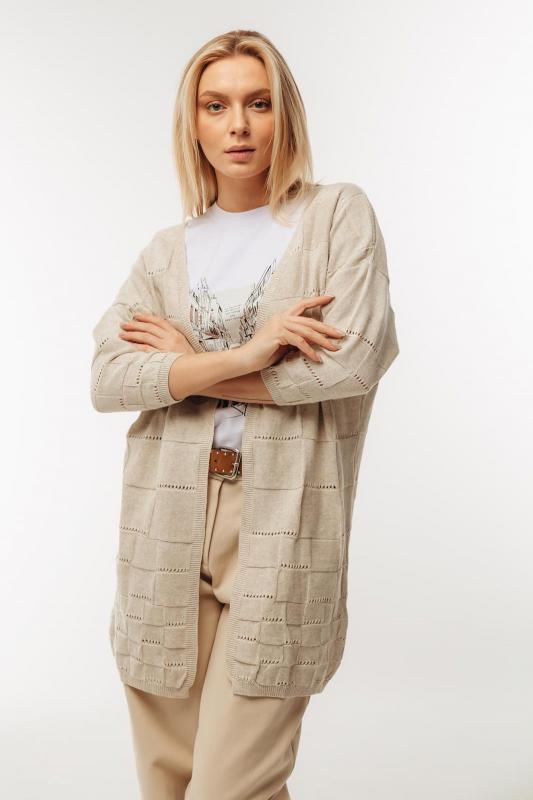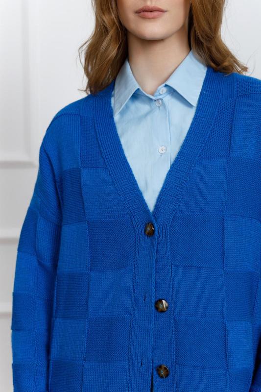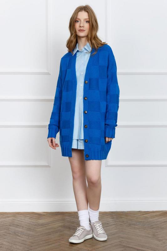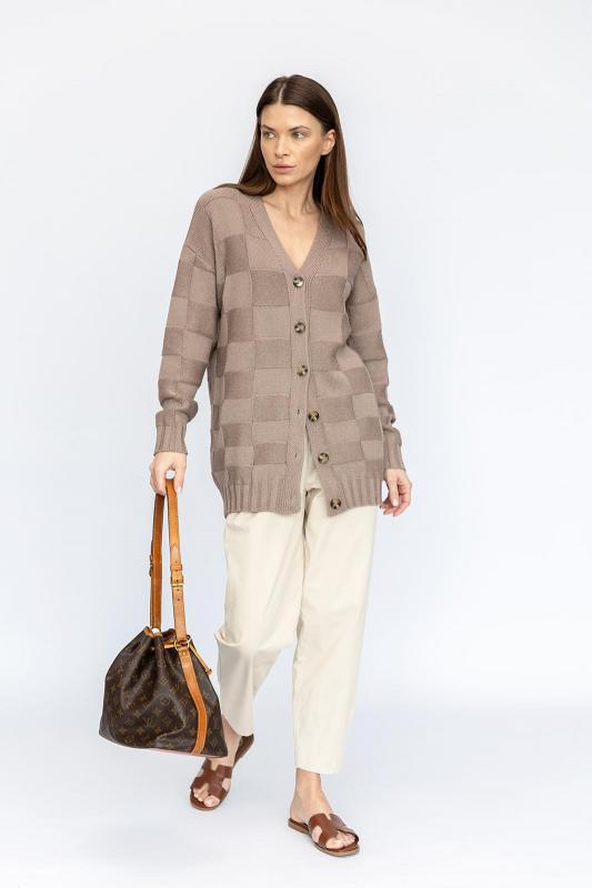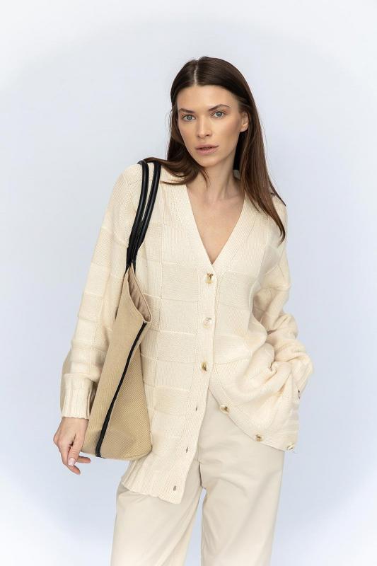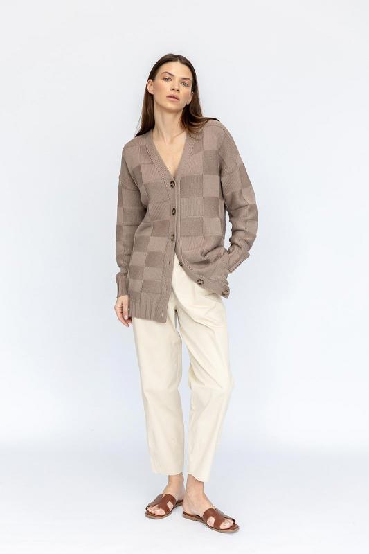 Классический универсальный женский кардиган прямого силуэта с интересным узором в квадраты, выполнен из мягкой, плотной, уютной пряжи с добавлением льна. В нашем кардигане Вы будете чувствовать себя комфортно и защищено. К тому же кардиганы Romgil, как отличные базовые элементы гардероба, легко сочетается в повседневном, офисном, вечернем и классическом стиле. Носи с классическими брюками, брюками палаццо, джинсами, юбками-плиссе и шортами. Идеально подходит для повседневной носки. Приятный к телу и легкий в уходе, после стирки - не линяет, не изменяет форму.