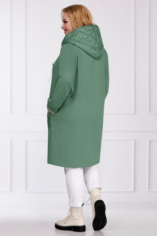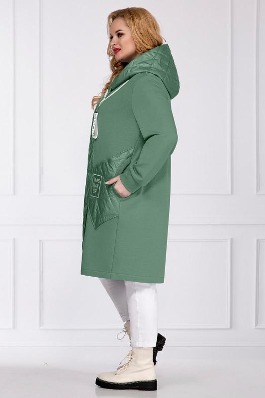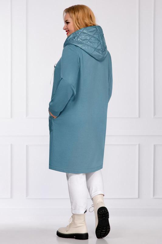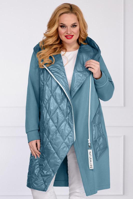 Кардиган женский прямого силуэта выполнен из двух видов ткани. Перед асимметричен. Правая полочка,капюшон, и карманы выполнены из курточной ткани, простёганной тонким синтепоном. Левая полочка, рукава и спинка выполнены из трикотажного полотна трёхнитка. Застёжка асимметричная на тесьму молния с декоративной подвеской. Внутри потайная кнопка. На полочках обработаны накладные карманы. Вход в карман обработан притачной планкой из трикотажного полотна. На левом кармане настрочена декоративная нашивка. Фурнитура может меняться. Дл. кардигана в 52,54,56 р. - 100 см. Дл. рукава в 52,54,56 р. - 60 см. Дл. кардигана в 58,60,62 р. - 100 см. Дл. рукава в 58, 60,62 р. - 62 см.