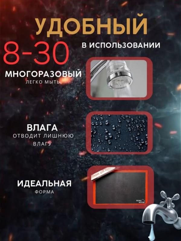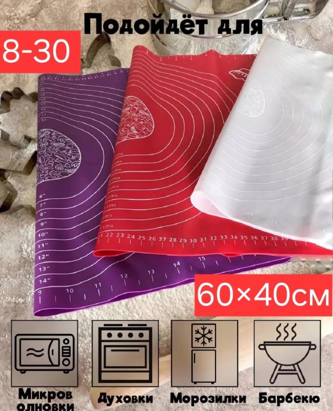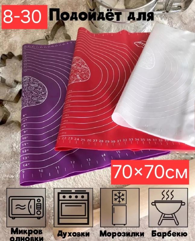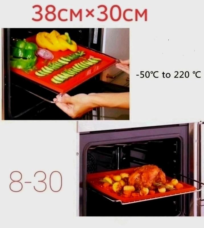 Силиконовый коврик антипригарный. Экологически безвредный и нетоксичный. Легко моется и хранится, вы можете свернуть коврик для хранения. Не чувствителен к перепадам температур, жаропрочный и морозоустойчивый. Можно положить в морозильник, микроволновую печь и духовой шкаф.