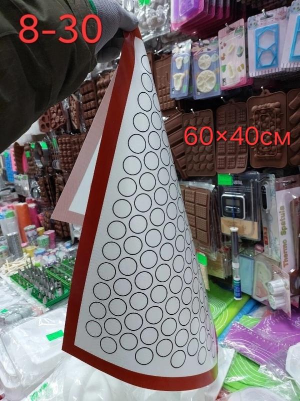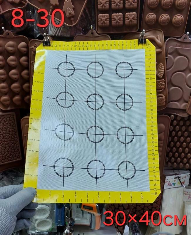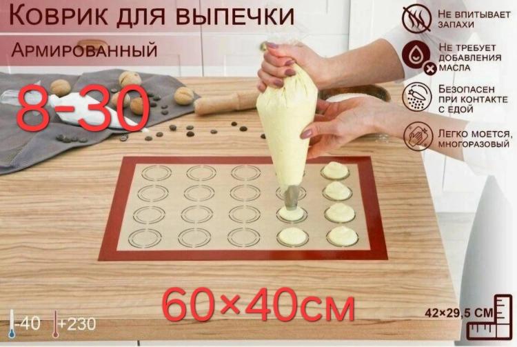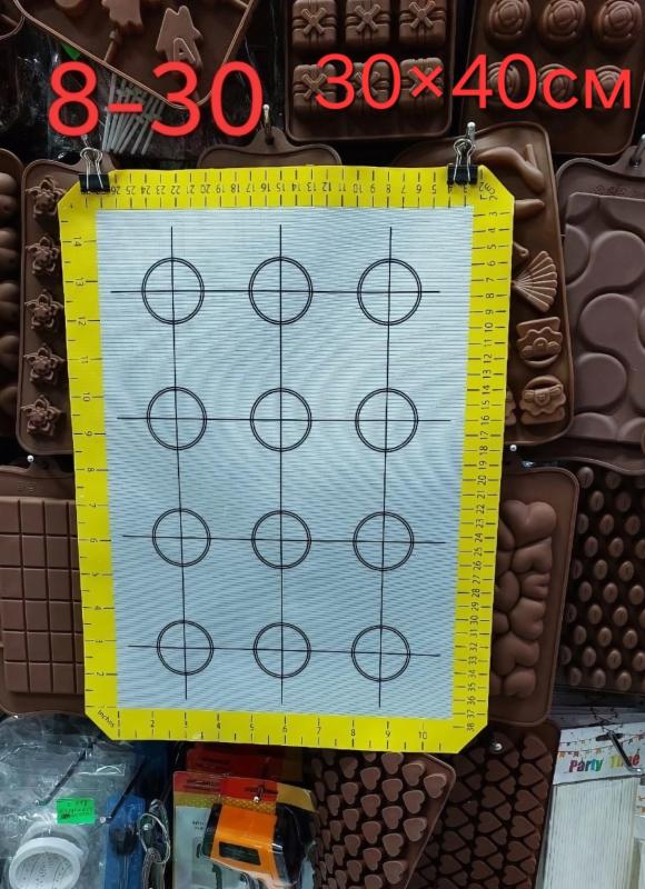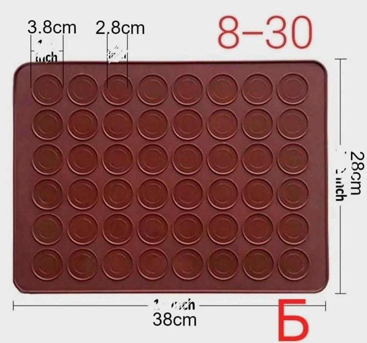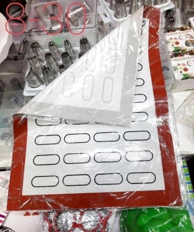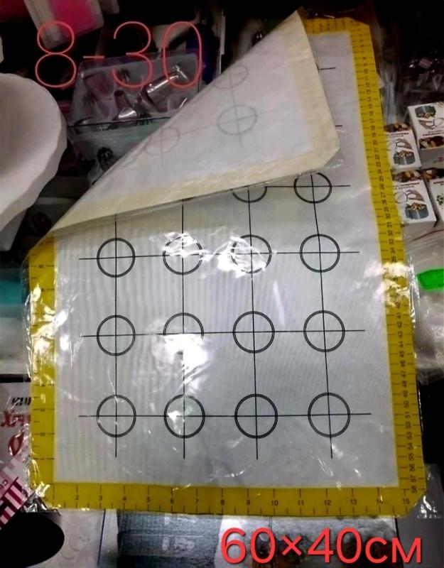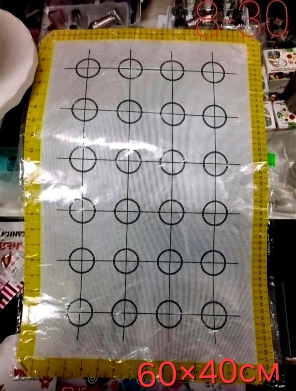 Силиконовый коврик с разметкой предназначен для удобной отсадки и выпечки макарон. Также подойдет для приготовленияПоказать ещё профитролей, печенья, слоеного теста, хлеба итд. Преимущества: - Данный коврик также может быть использован в качестве подложки для продуктов глубокой заморозки, для работы с сахарной мастикой. - Можно использовать как при низких, так и при высоких температурах. - Силикон абсолютно безопасен для использования, не впитывает запахов, не влияет на вкус готового изделия. - Удобен в использовании, не нуждается в смазке, легко моется