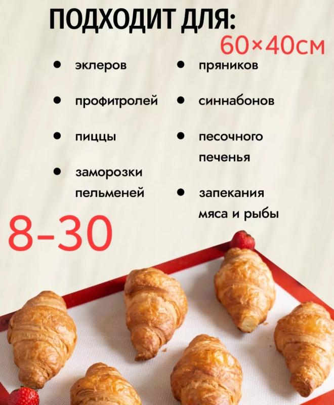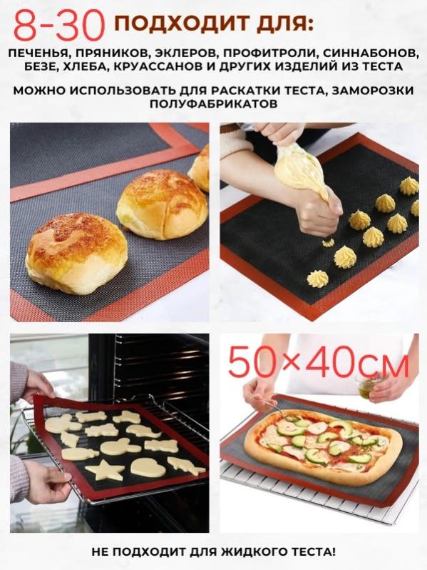 Благодаря микроперфорации коврик идеален для приготовления эклеров, печенья, слоеного теста, хлеба и пиццы.