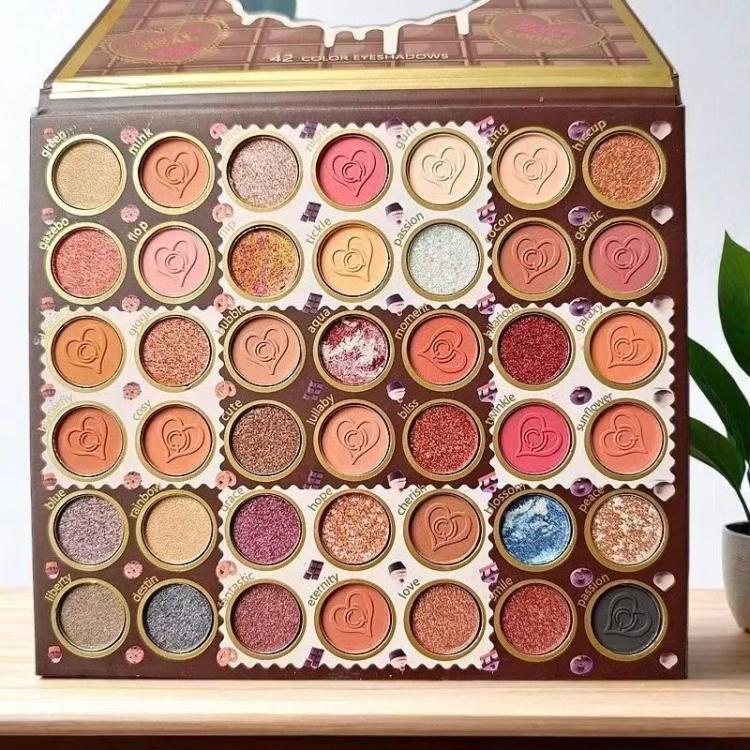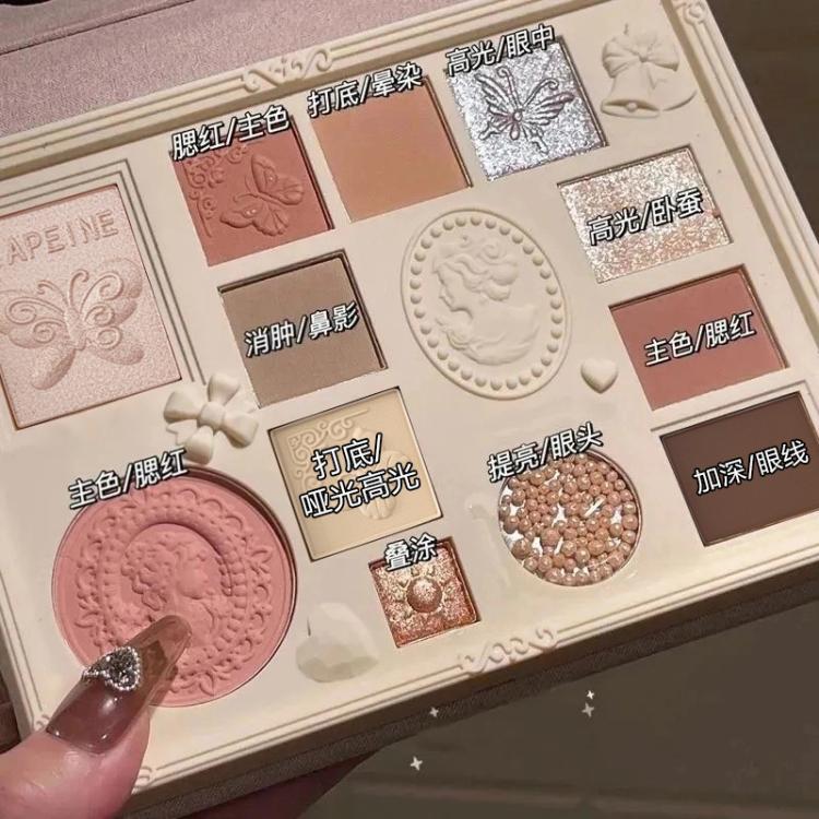 Палетка теней, матовые мерцающие румяна и хайлайтер, очень красиво оформленная в ретро стиле