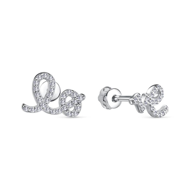 Серьги с фианитом родированные серебро 925*
