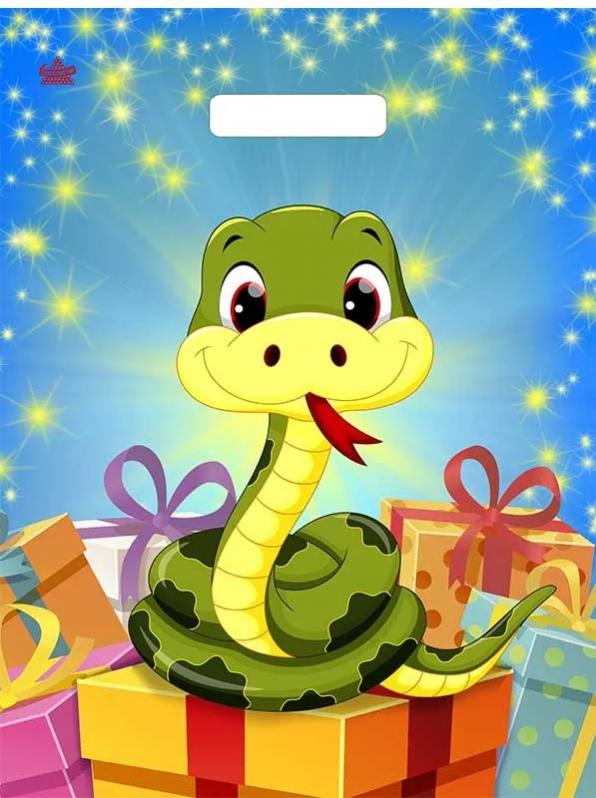Пакет с вырубной ручкой 31*40 детский, змейка с подарками 60 мкм. плотный, глянц.лам., расш. дно